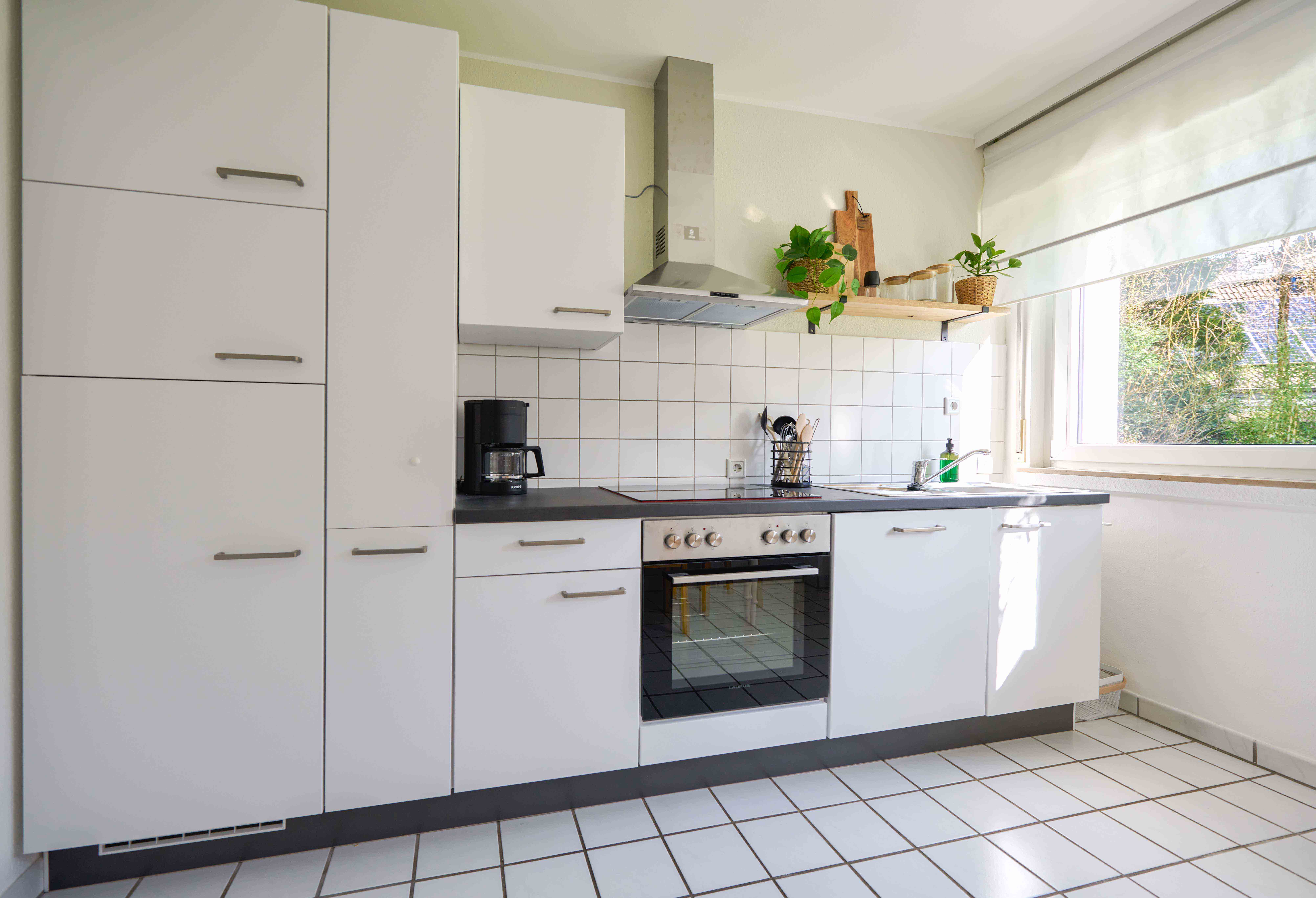 – eine voll ausgestattete Küche mit Mikrowelle, Spülmaschine und Sitzgruppe