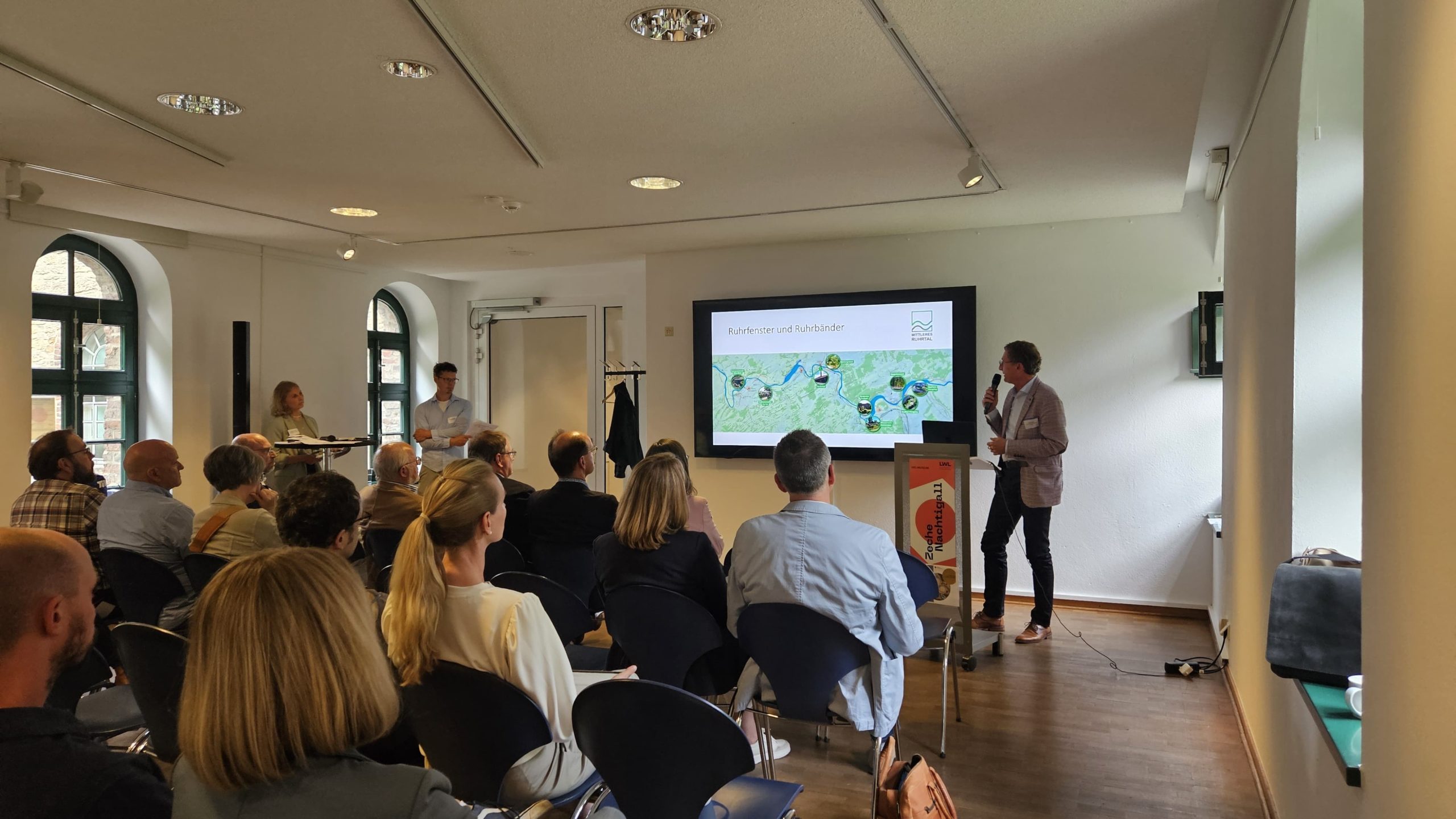 - Dirk Ruß, Projektmanagement Mittleres Ruhrtal, stellte aktuelle Planungsstände und Projektinvestitionen aus der regionalen Kooperationsgemeinschaft Mittleres Ruhrtal der Städte Hattingen, Witten, Wetter (Ruhr), Herdecke und Hagen vor.